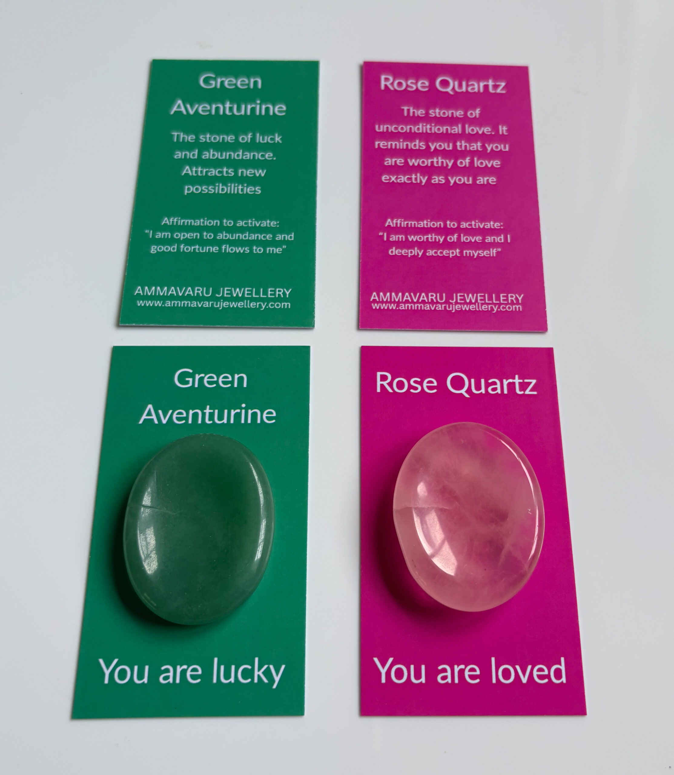 Each stone includes an affirmation card to activate its intention: