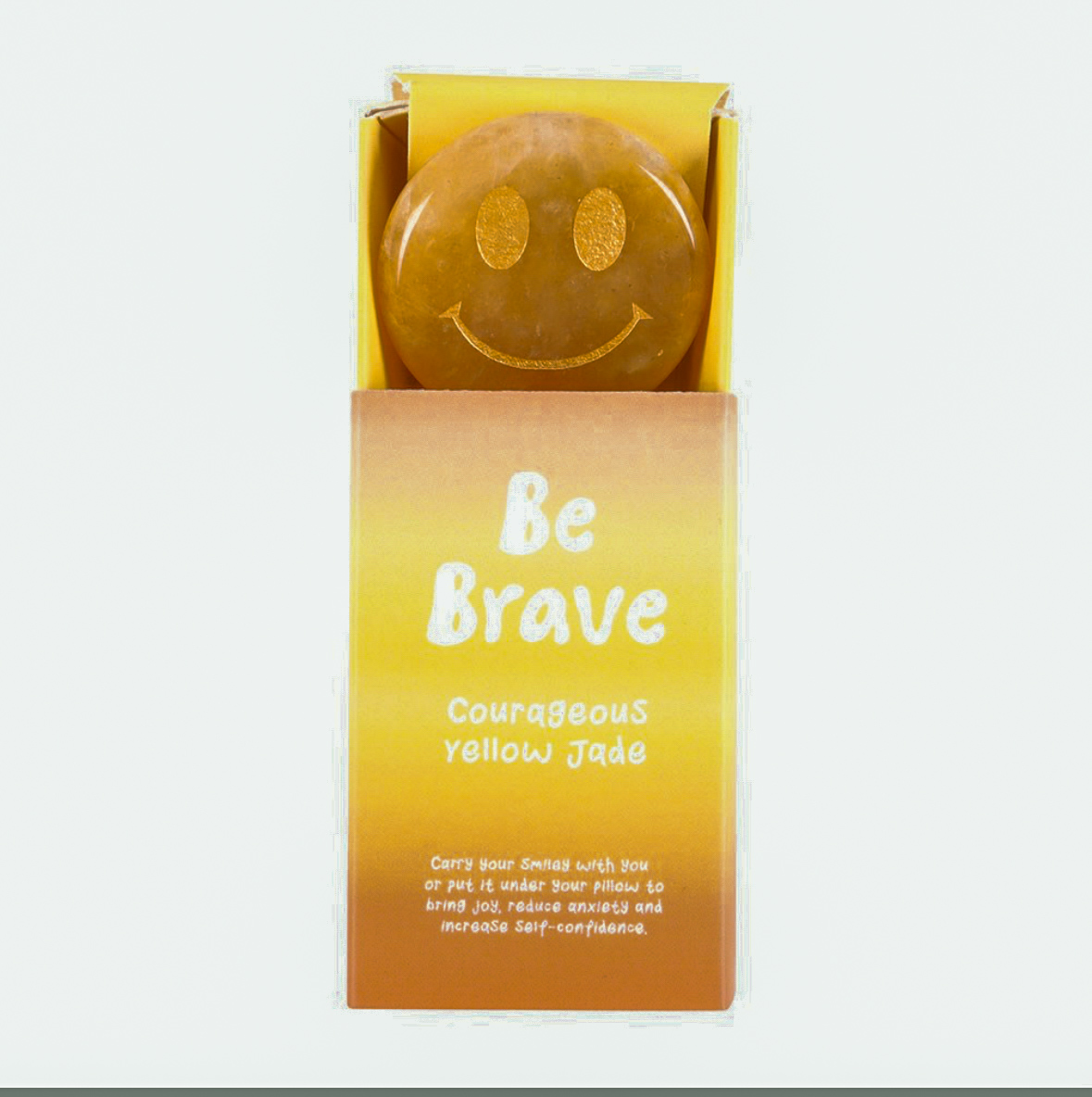 This Yellow Jade smiley crystal is engraved with a gold smile and presented in a vibrant “Be Brave” gift box, making it a thoughtful and affordable gift for anyone needing reassurance, confidence or calm.